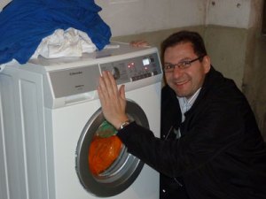 Aufwärm-Thema, neue Waschmaschine: Heute war ich speziell gut gelaunt, freute mich über unsere neue Waschmachine. Denn am Montag ist unsere alte Maschine ausgestiegen und eine Reparatur lohnte sich nicht mehr. Zum Glück, kann ich als Interfunk-Mitglied alle Haushaltapparate direkt einkaufen, so war der Investitionsschock nicht so gross. Jetzt können die Krav-Maga-Kleider doch noch rechtzeitig gewaschen werden und ich muss über das Wochenende nicht nackt trainieren. 🙂 Dies nur so nebenbei, habe es euch ja gesagt und ihr habt mich ausgelacht, schon gut, habe damit kein Problem, aber von nun an habe ich mir fest vorgenommen, dass ich lernen werde wie man die Wäsche waschen muss. 🙂 Die Maschine konnte ich ja schliesslich auch selber montieren. Gut, Patrik hat auch noch etwas mitgeholfen…herzlichen Dank! Ab sofort werden meinen blauen T-Shirts flauschiger und farbintensiv und fein duften.