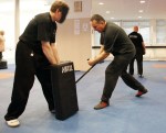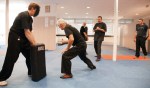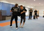 Heute wurde in der Krav Maga Schule in Herzogenbuchsee der erste PR24-Kurs durchgeführt. PR24-Instruktor Andy Wyler wurde damit beauftragt und instruierte die korrekte Handhabung des Schlagstocks. Gleich zu Beginn, im Theorieteil, gab es Informationen über die Rechtsgrundlage. Der Police Tonfa ist eine Waffe und es ist Pflicht zu wissen was man damit anrichten kann und welche Konsequenzen es hat, wenn der Schlagstock einsetzen würde. Nach der Theorie ging es zur Praxis. Andy zeigte uns wie man sich mit dem PR24 schützen kann. So übten wir zuerst ein paar Blockvarianten. Die Ausgangsposition und die Lauftechnik waren für alle nicht ganz neu, kannten wir schon aus dem Krav Maga. Mit den Kissen übten wir die Schlagtechniken. Manometer, wenn man mit dem Stock treffen würde, dann ist der Knochen garantiert kaputt!!! Brutal! Die gelernten Schlagtechniken mussten mehrmals wiederholt werden. Schnell einmal war allen klar, dass es ohne Hüftdrehung nicht funktionierte. Auch musste die Beintechnik