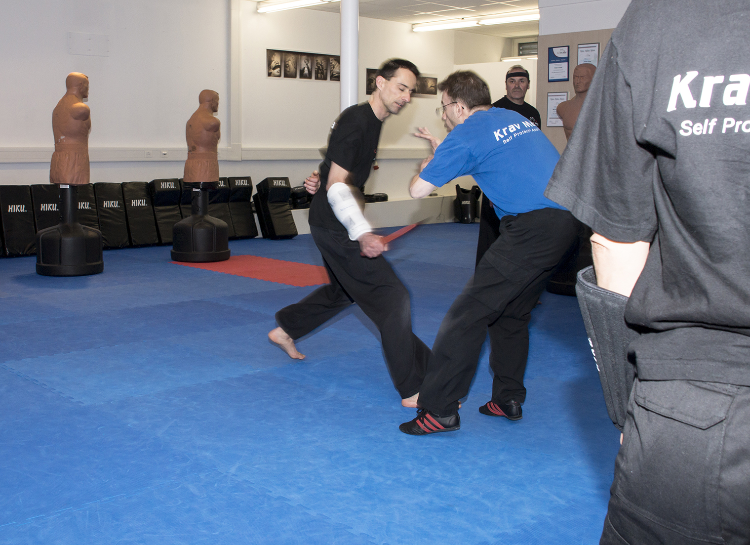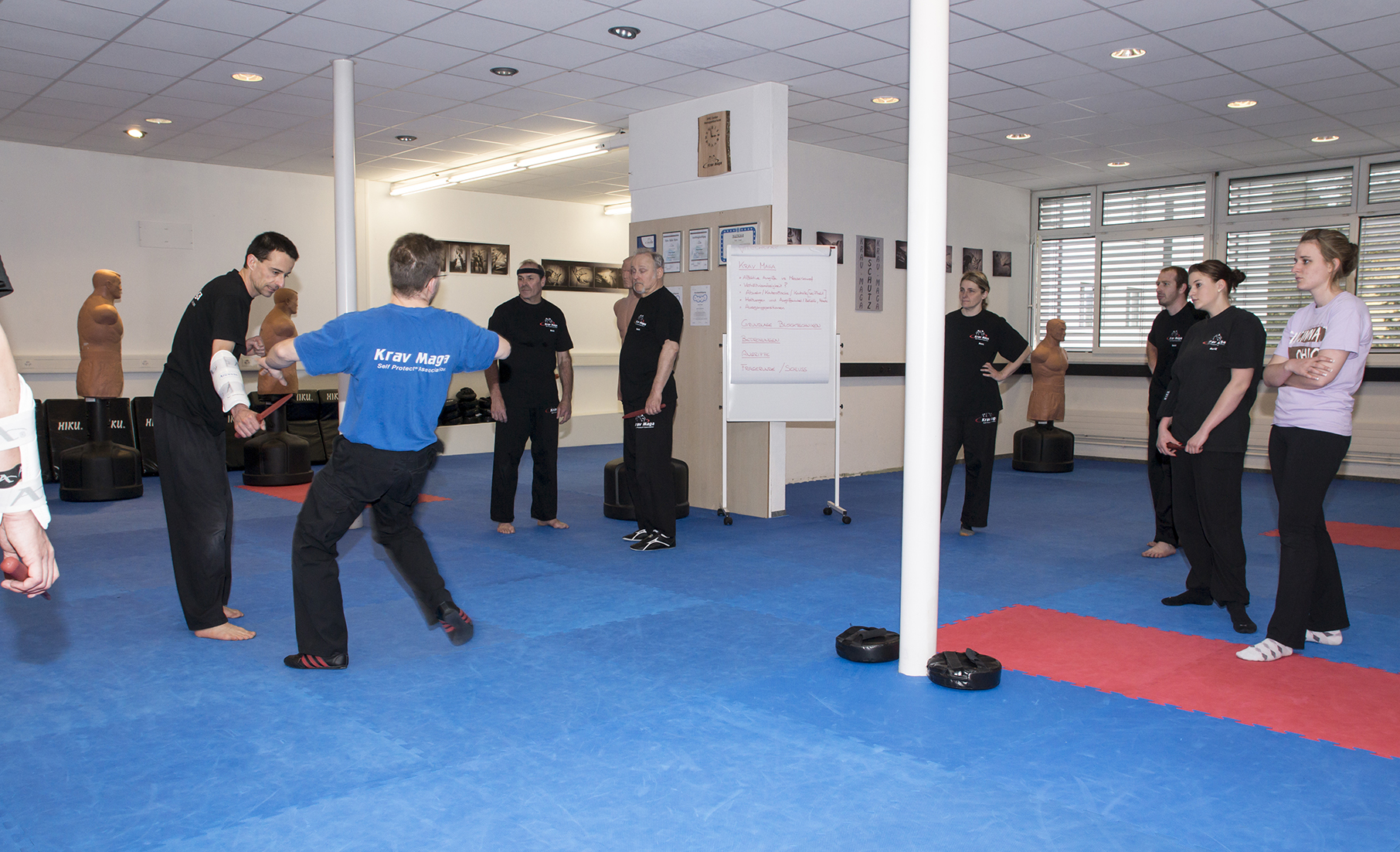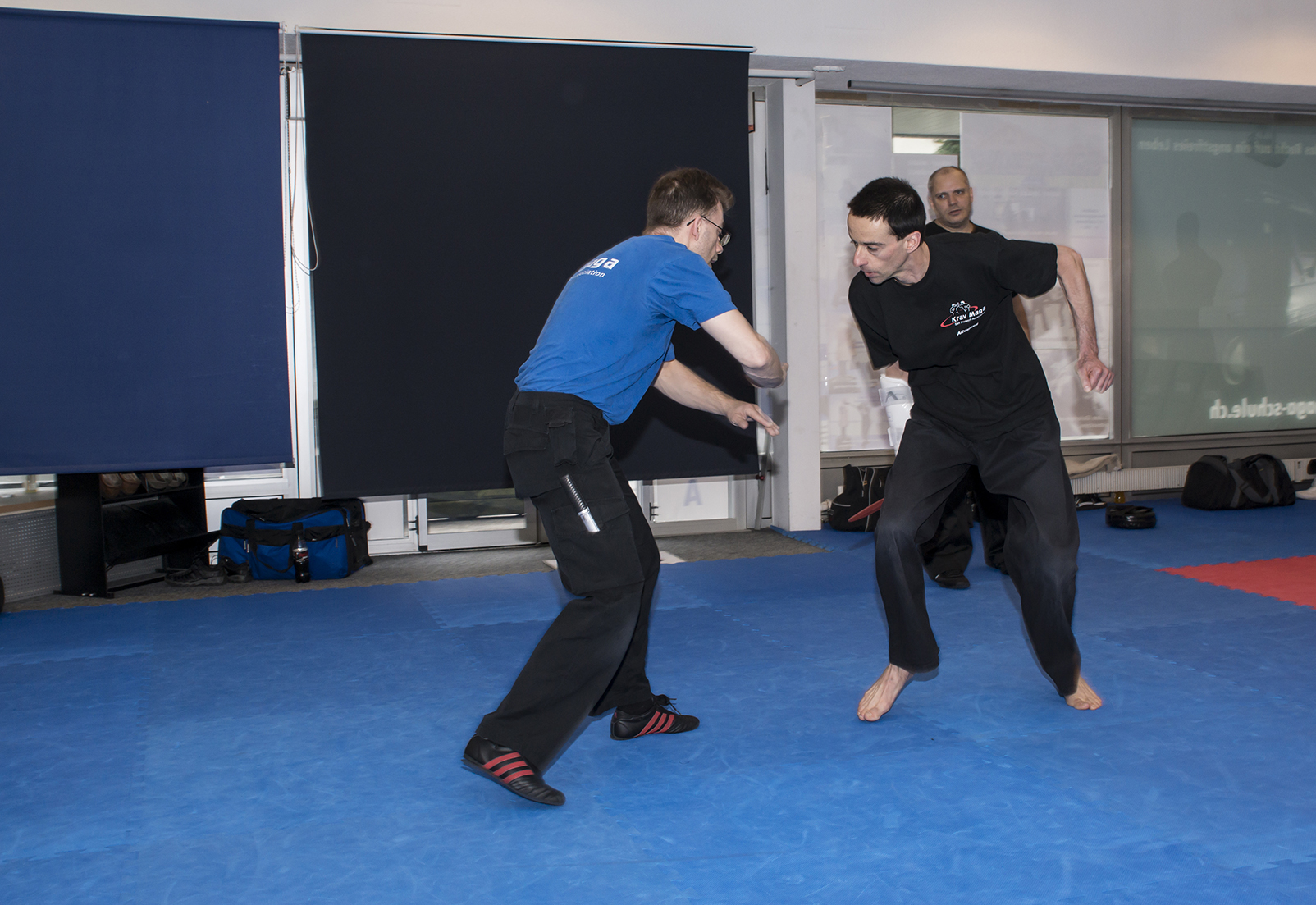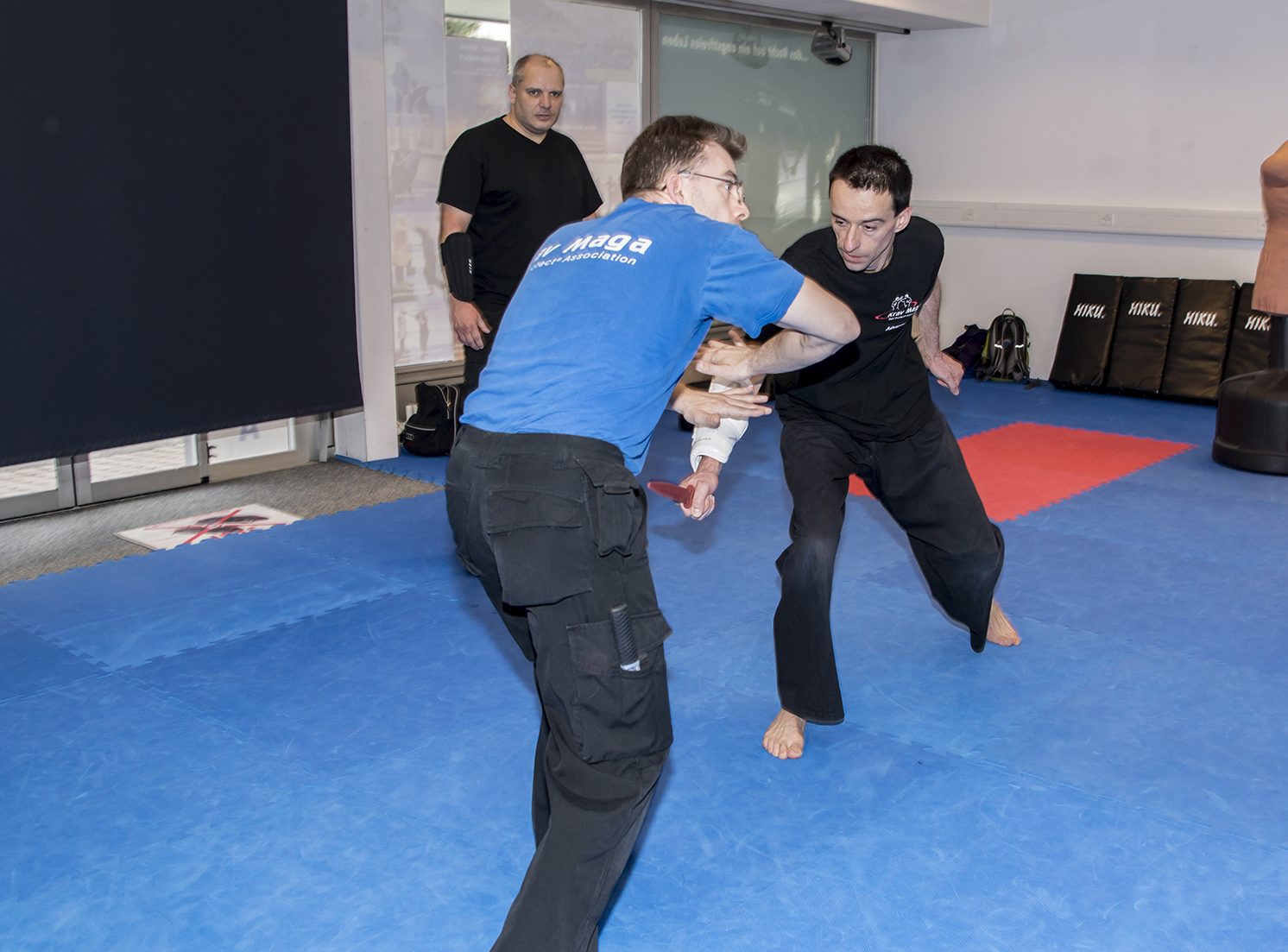 In der Krav Maga Schule legen wir grossen Wert darauf, dass die Mitlieder über ein sehr breites Spektrum an Techniken verfügen. Einer der Schwerpunkte ist die Messerabwehr. Um eine allfällige Messerattacke einigermassen heil zu überstehen müssten wir täglich mehrere Stunden trainieren. In den wöchentlichen Lektionen ist es selten möglich, solange und dermassen ausführlich zu instruieren. Deshalb habe ich mich entschlossen ein spezielles Seminar zu organisieren, welches Markus leitete, da er das Thema Messerabwehr speziell bevorzugt und viel darüber weiss. Wie es sich zeigte, war das eine gute Idee und Markus hat die Aufgabe sehr gut gelöst und das Seminar spannend und lehrreich gestaltet. Über drei Stunden konnten die Teilnehmer üben und von unserem Erfahrungsschatz einiges lernen. Schon jetzt ist klar, das wird wiederholt!