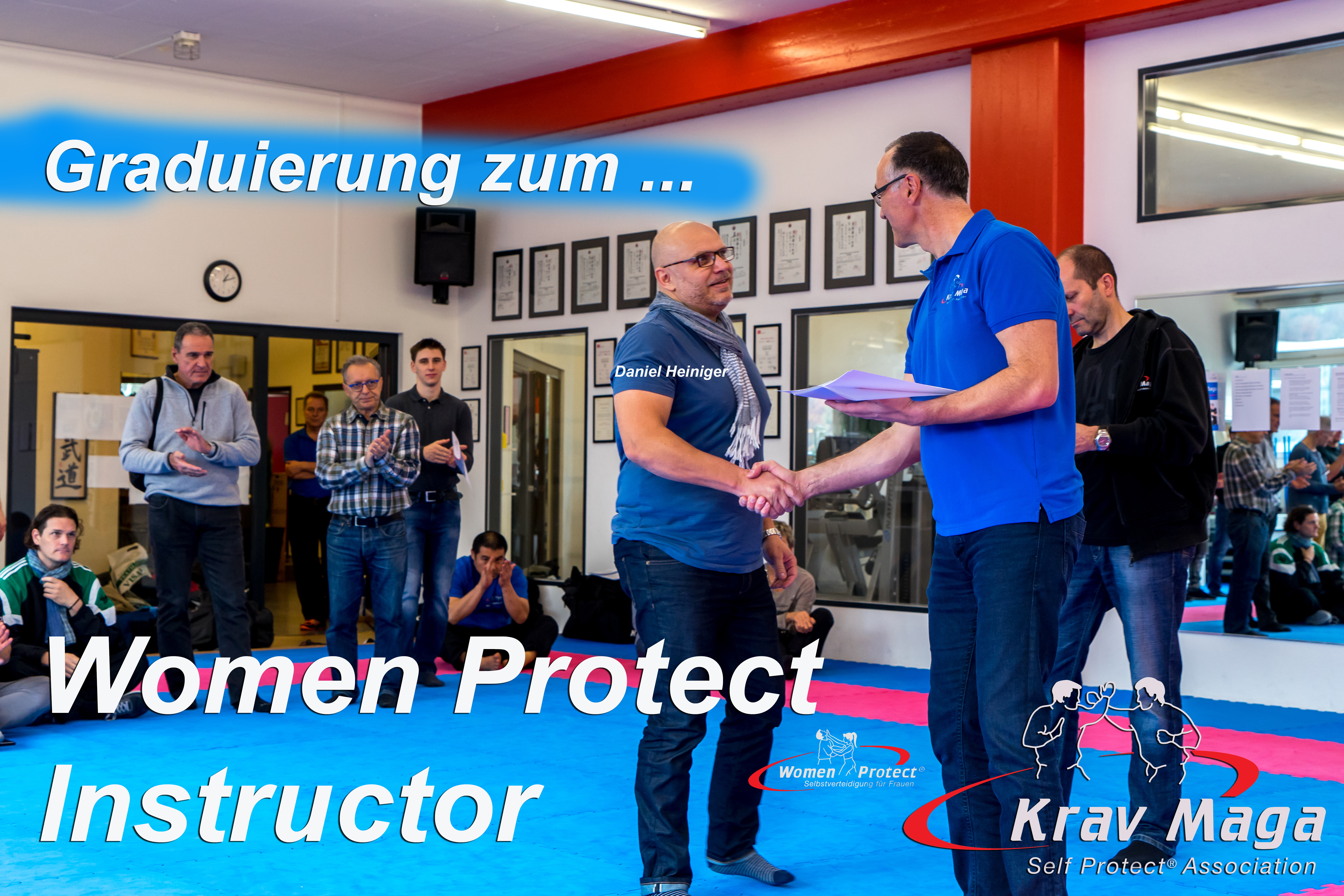Instruktor Daniel Heiniger das Diplom zum Women Protect Instruktor.