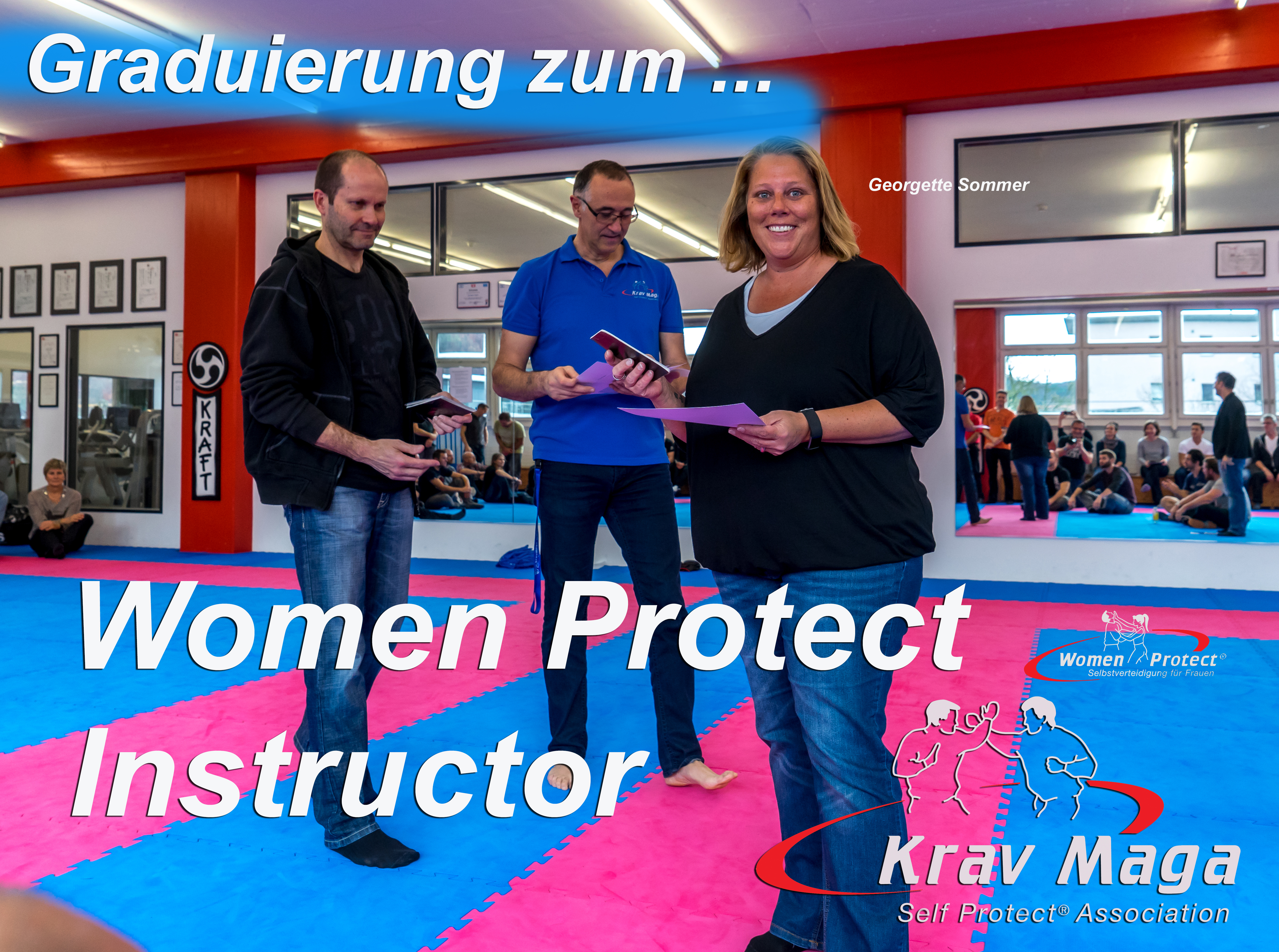 Instruktorin Georgette Sommer das Diplom zur Women Protect Instruktorin.